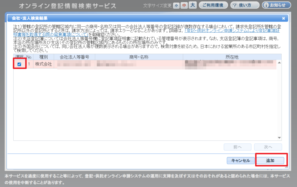 検索ボタンを押すと結果が表示されますので、チェックして追加します。