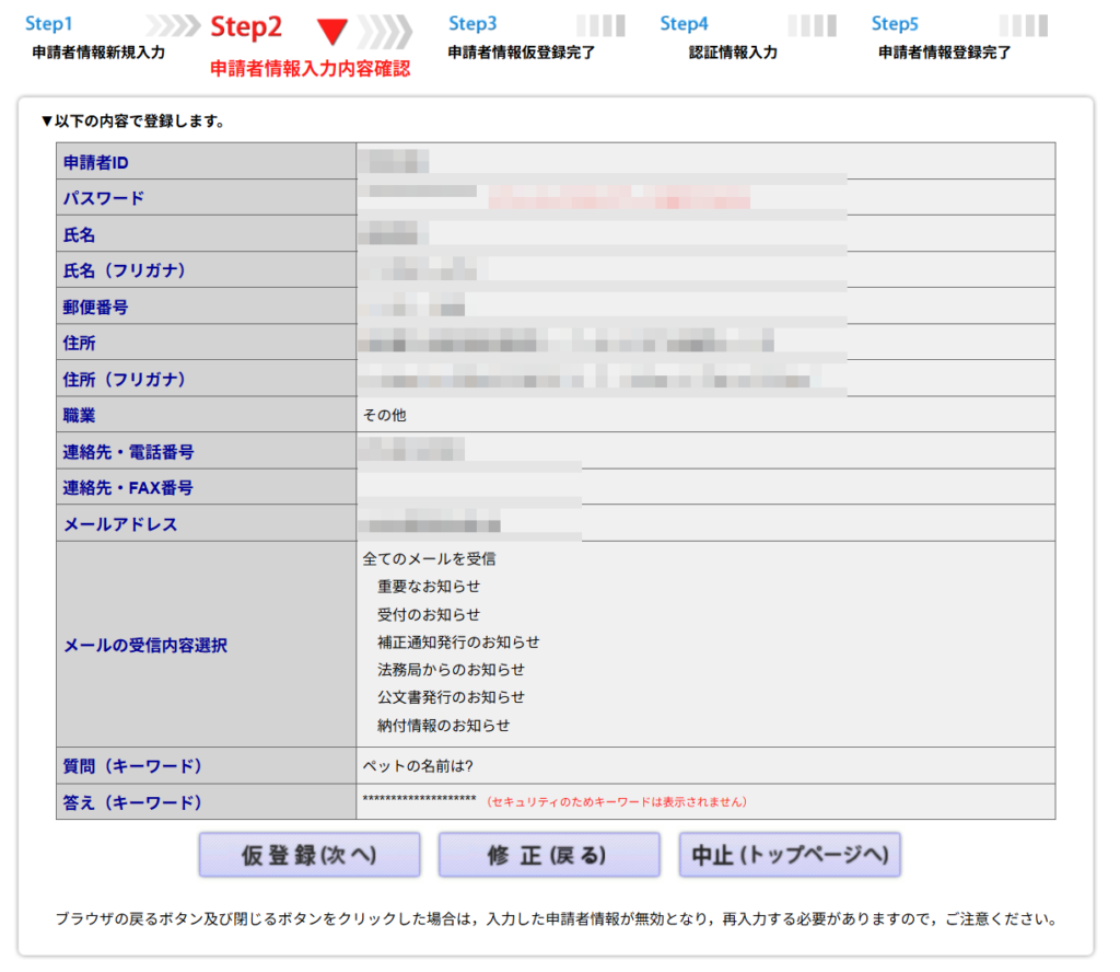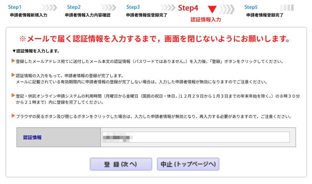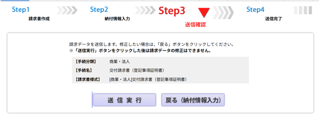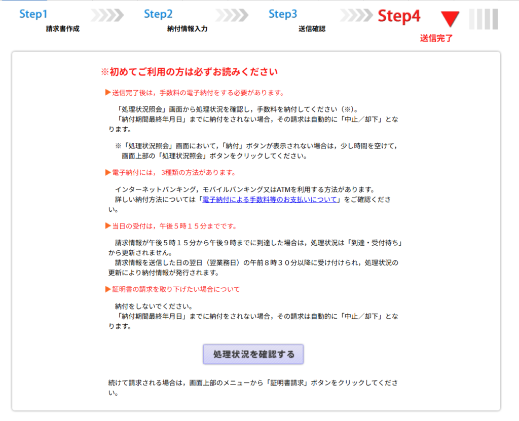 「処理状況を確認する」をクリックして確認画面に進みます。