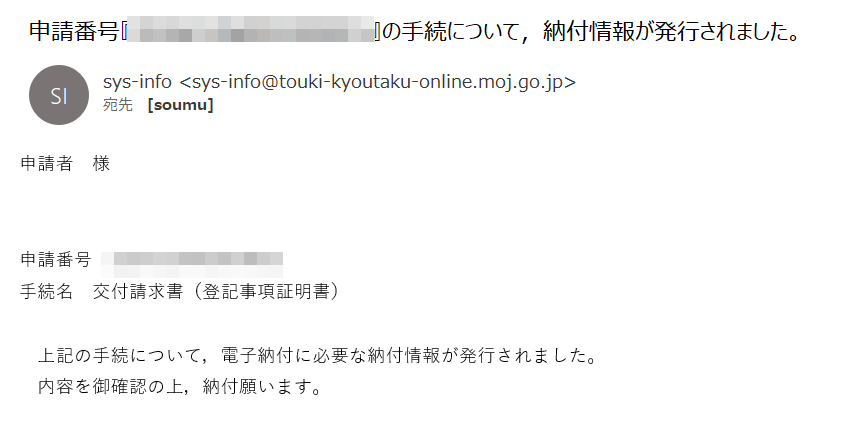 金額と払込先が「法務局」となっていることを確認して払い込みを行います。