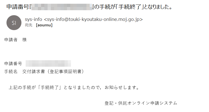 私の場合は、ここから1時間ほどで処理状況も「手続終了」となりました。
