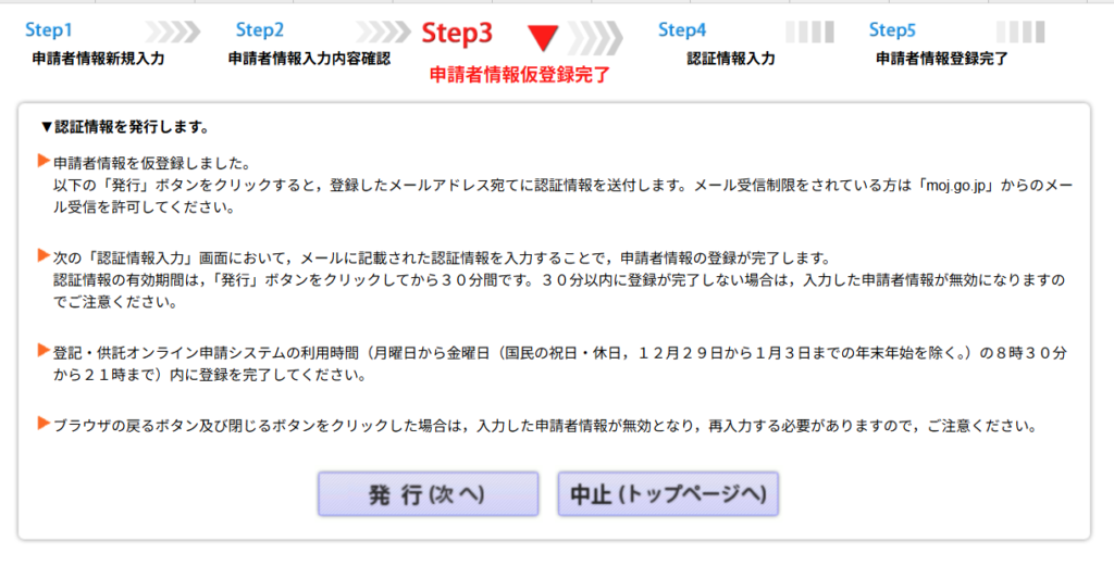次に「発行」ボタンをクリックして、メールアドレス確認に進みます。